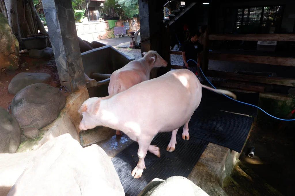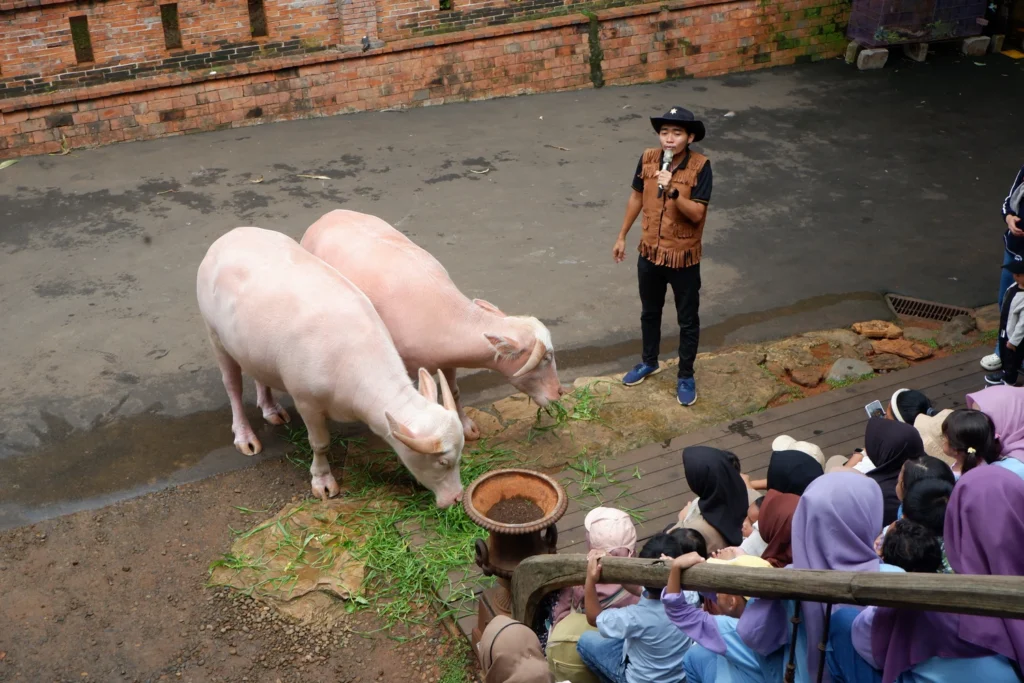 Lanjut, hewan berikutnya yang dipanggil adalah sepasang Kerbau bernama Bella dan Berry. Ini bukan sembarang kerbau ya, karena keduanya merupakan kerbau Albino. Makanya alih-alih berwarna hitam, kulit mereka justru berwarna cerah macem Bule.