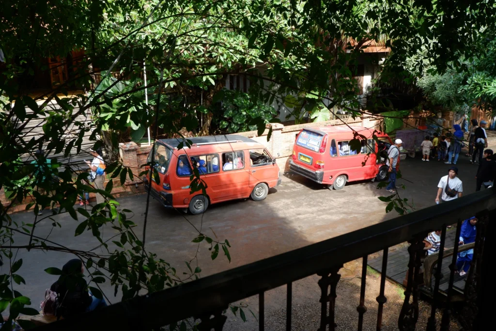 Saat sedang duduk bersantai di tepi kolam, tiba-tiba mata saya menangkap beberapa mobil angkot yang datang secara bersamaan. Saya hitung-hitung, total ada 5 angkot yang semuanya full berisi penumpang siswa-siswi sekolah dasar.