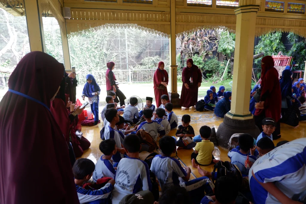 Rombongan dari SD Rawalumbu akan masuk ke dalam Aviary terlebih dahulu, sementara rombongan Medinah Daycare dan Shinning Kids Class akan menonton Pertunjukan Parade Hewan.