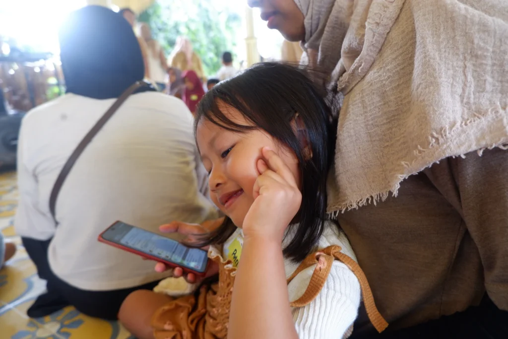 Jadi pas di depan pintu, kami mendapati instruksi, “Untuk anak-anaknya mohon baris di depan yaa. Biar anak-anak duluan, nantinya akan dijaga oleh keeper kami.” Mendengar itu, kami pun membawa Putri ke depan, antri bersama anak-anak seumurannya.