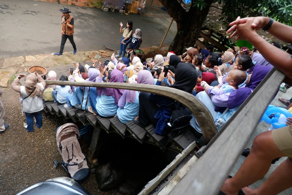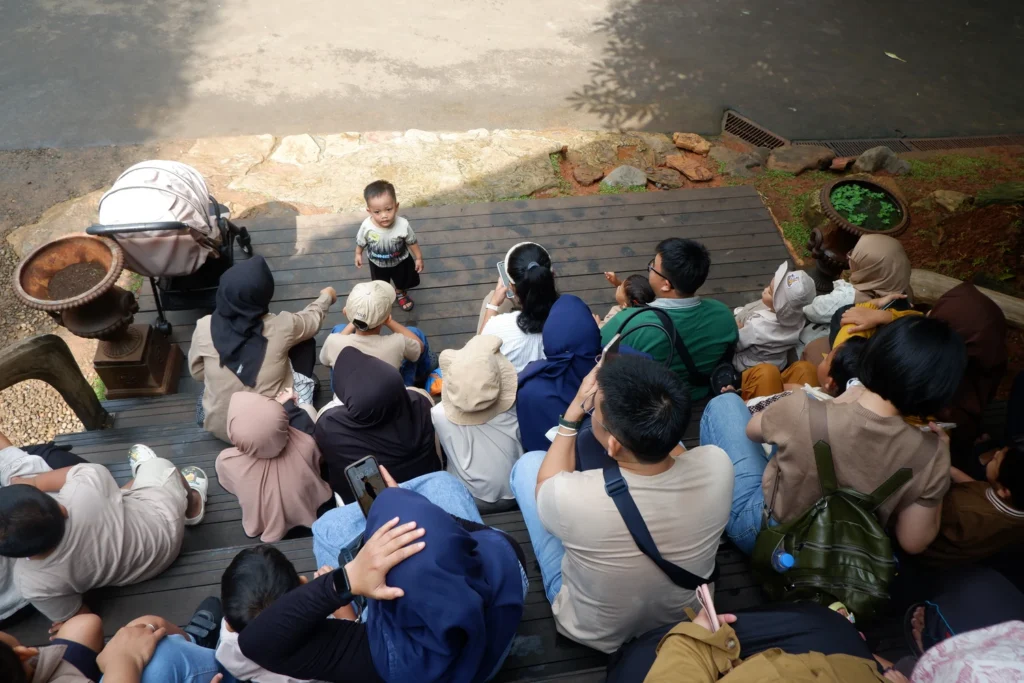 Untuk mengikuti sesi parade hewan ini, pengunjung akan diminta untuk duduk rapi di sekitar tangga pendopo. Nah masalahnya, area tangga ini cukup terbatas. Alhasil drama pun tercipta perkara Ibu-ibu dari Medinah Daycare pada gak kebagian tempat duduk.