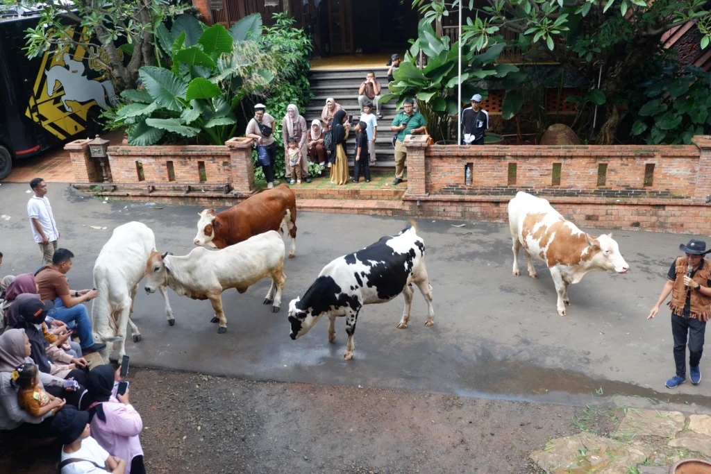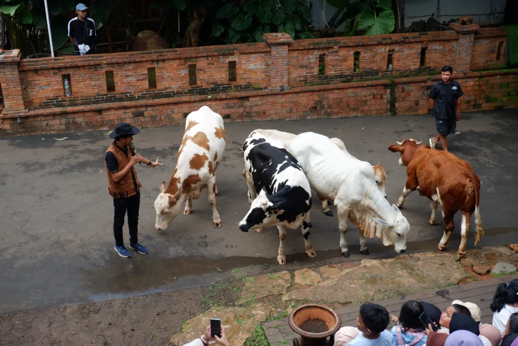 Ada Kerbau, tentu ada sapi juga ya. Kali ini yang dibawa keluar bukan cuma satu, tapi banyak jenis. Ada jenis sapi perah yang warnanya tutu-tutul, sapi brahma dari India, juga sapi lokal yang tak kalah uniknya.