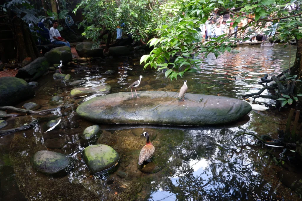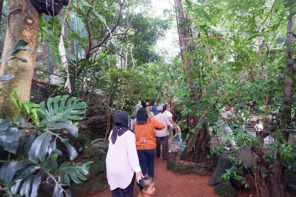 Tapi okelah, setelahnya si semuanya biasa saja. Kami langsung dibuat gagal fokus, sebab suasana di dalam Aviary ini memang cukup rindang dan indah. Pepohonannya membawa suasana syahdu, sedikit menenangkan hati kami yang kecewa. Tiba-tiba saja saya teringat dengan suasana di Aviary milik Animalium BRIN. Kurang lebih sama persis.