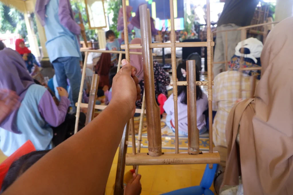 Sebagai penutup dari rangkaian acara singkat ini, kami semua kembali berkumpul di area pendopo. Untuk apa? Untuk main angkluuuunggg euy…