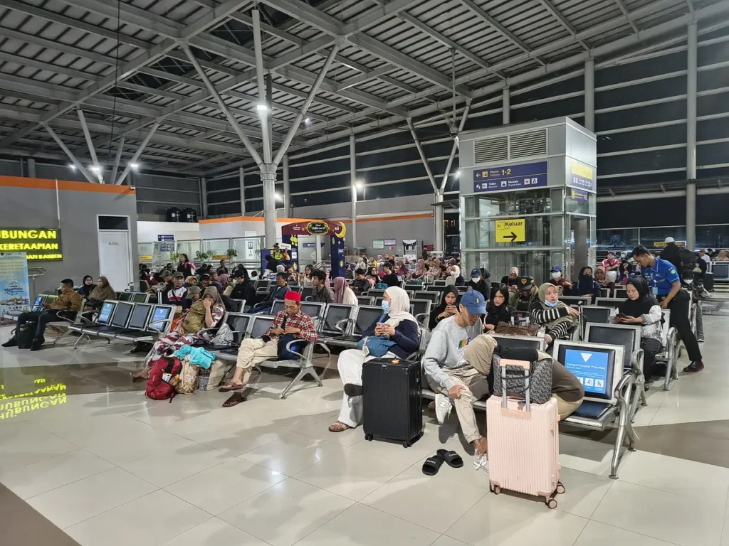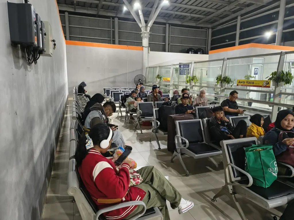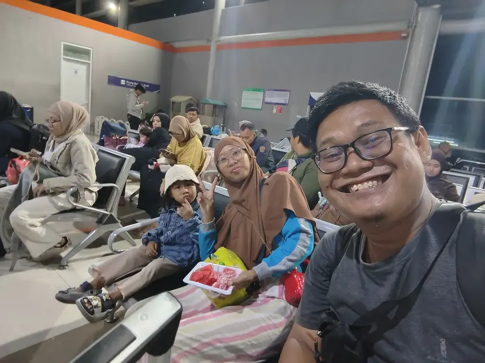 Kami pun langsung menggeret koper menuju area tunggu. Disini, kepadatan manusia langsung tersaji di depan mata. Penuh riuh dengam orang-orang yang bersiap untuk pulang kampung, baik itu dengan membawa koper maupun sekedar backpack saja.