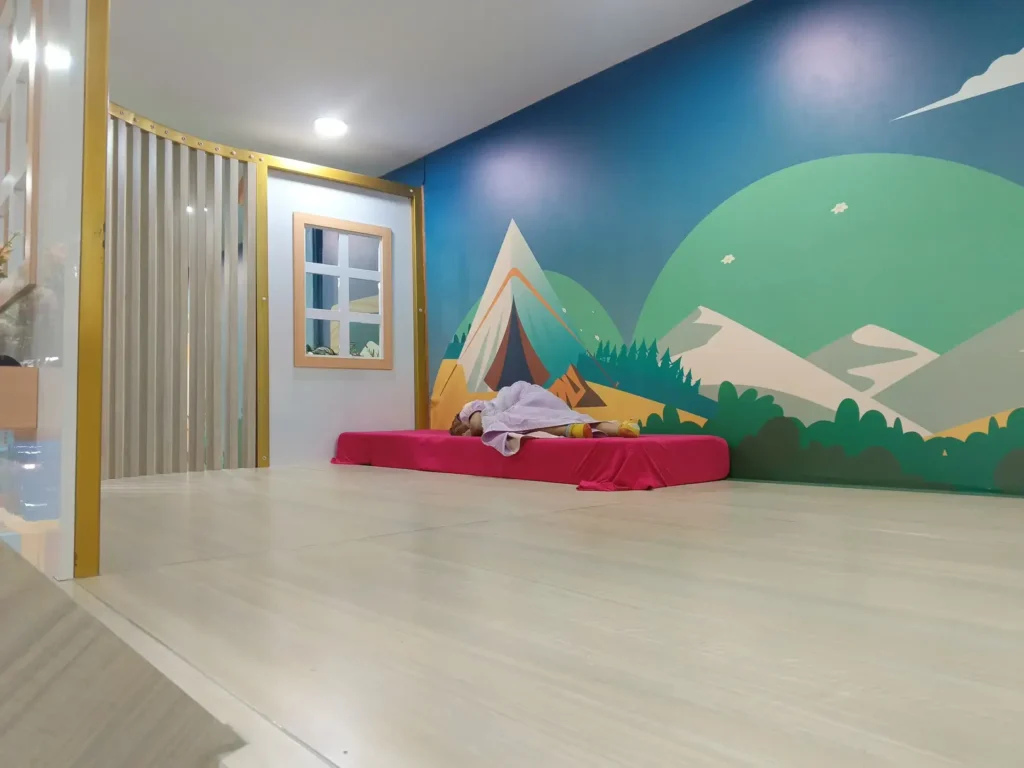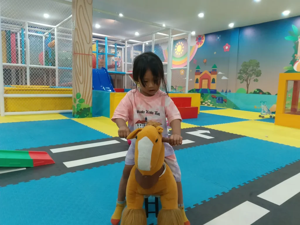 Asiik nih, tempat nya bersih dan nyaman, udah itu warnanya cerah khas anak-anak, nah mumpung si Mput masih bocah, kebersamaan itu sih yang jadi hal yang kayaknya bakalan susah di dapat kalo dia udah beranjak remaja nanti, mumpung masih kecil sebisa mungkin selalu ada waktu, walopun bapaknya masih capek dan keringetan waktu gak akan bisa di ulang mas Fajar.