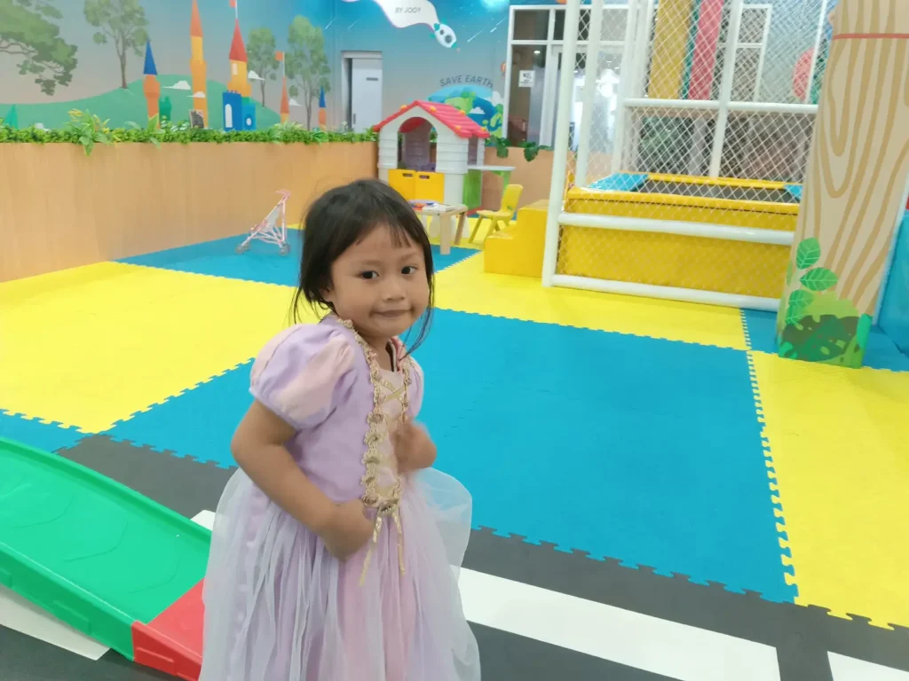 Dan saya suka My Jinji Playground & Cafe ini. Dari foto-fotonya, memang sudah luas dan lengkap permainan. Sampai ada konstum segala. Putri bisa jadi princes dong hehehe. Saya jadi ingat cerita Mas Fajar yang Putri ingin jadi princess.